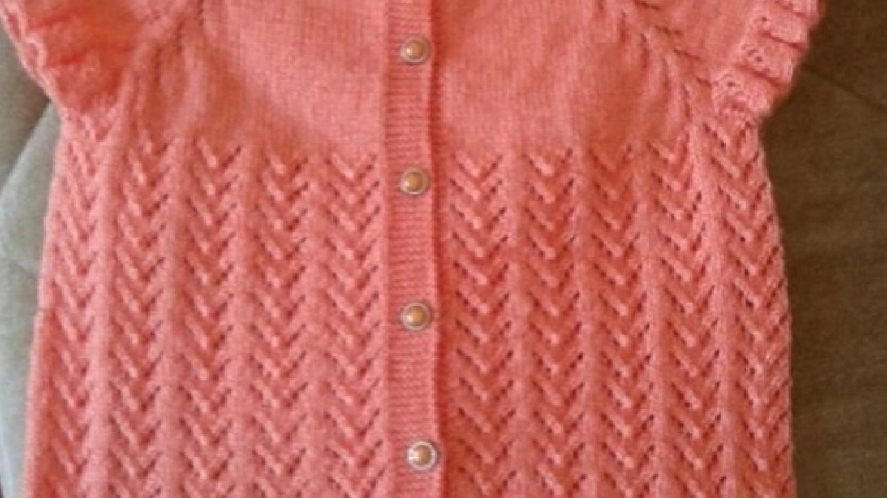 yakadan başlanılarak örülmüş motifli kız bebek yeleği