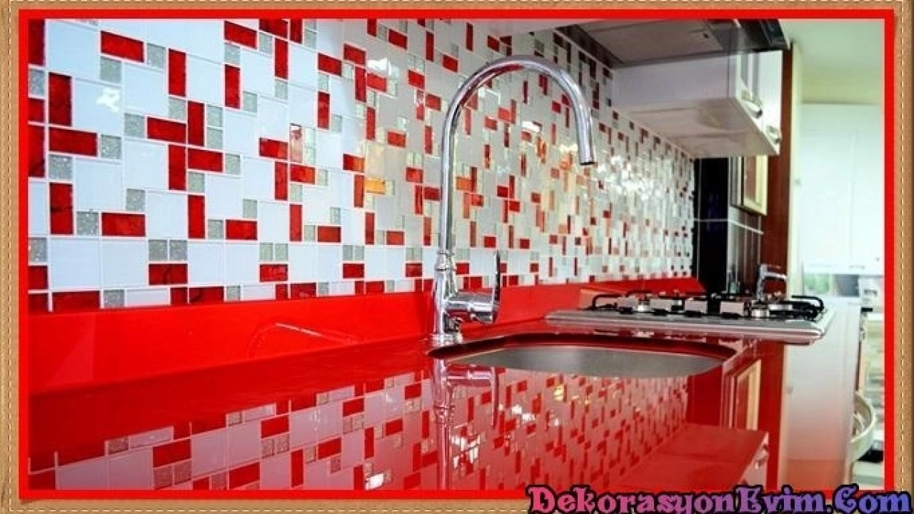 Kırmızı Beyaz Mutfak Tezgah Arası Cam Mozaik Modellerinden Örnekler