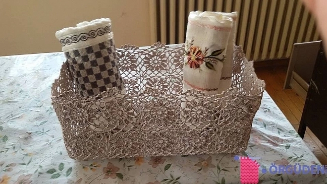 Birbirinden şık rengarenk banyolarda, mutfakta salonda her alanda kullanabileceğiniz çok şık örnekler burada. Üstteki örnekte havluların içinde bulunduğu sepet örneği neresi için düşünülerek yapılmış anlamışsınızdır. Çamaşır makinenizin üzerinde ya da banyoda dolap üzerine şık bir görünüm sergileyebilir. Hatta süs sabunları ile renkli bir görünüm sergileyebilirsiniz. Sadece görünümü ile değil işlevselliği ile de örgü sepetler çok ilgi çekiyor. Mutfakta da yine ekmek sepeti olarak, daha küçük dantel sepetle ipleriniz,şiş gibi örgü malzemelerini koyabileceğiniz örnekler yapabilirsiniz. Aşağıdaki örgü sepet örneğini beyaz üzeri pembe dantelli kurdela ile süsleme yapılmış. Siz de bu şekilde sepetinizi süsleyerek daha şık hale getirebilirsiniz. Dantel yapmayı sevenler için bulunmaz bir hobi aslında sepet yapımı. Sizlere bunun kolay yapımı için ders niteliğinde olabilecek derya baykal programından dantel sepet yapımı videosunu da paylaşmak istiyorum. Derya Baykal programı hanımların vazgeçilmezi arasında dolayısı ile çok izlenen programda hem örgüye dair hem hayatı kolaylaştırıcı birçok şey de bulunmakta. Programdan derya baykal havlu kenarı modellerini inceleyerek dantel sepetler içinde sergiyeceğiniz çok özel modeller bulabilirsiniz.