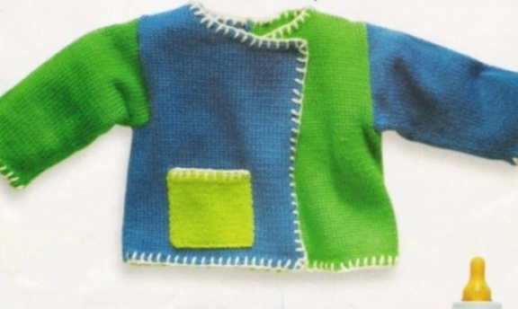 yeşil mavi tek cepli kolay örgüden bebek hırka modeli