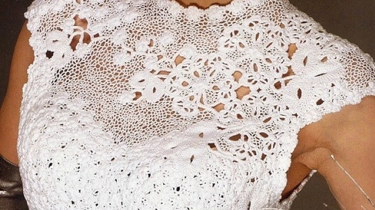 motiflerle süslenmiş tığ işi sıfır kol örgü abiye bluz