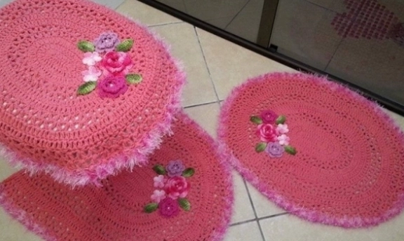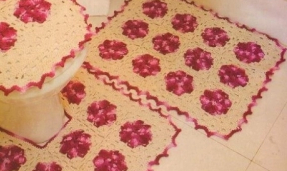 gül motifli el örgüsü klozet takımı