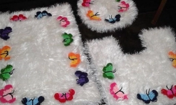sakallı ipten renkli kelebek motifli klozet takımı
