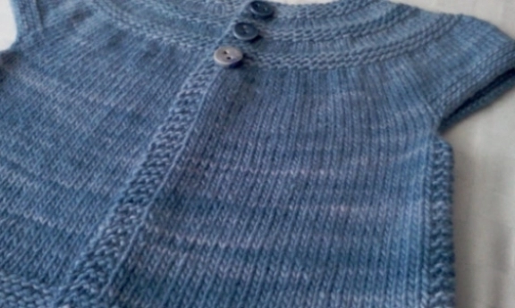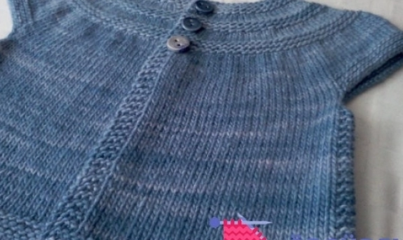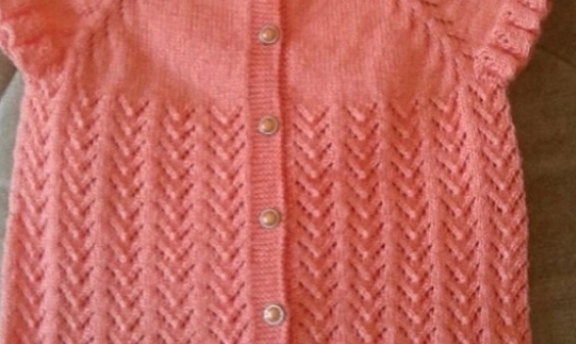 yakadan başlanarak örülmüş kız çocuk örgü yelek