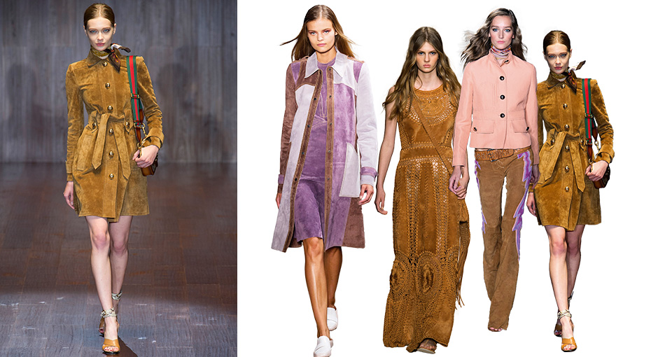 Yeni sezonda süetler, en az kendileri kadar yumuşak renklerle bir araya geliyor. Sorbe ve morun neredeyse her tonunda rastladığımız süet parçalar, aslını da inkar etmiyor; ona en çok yakışan kahverengiler ve yeşillerle kullanılıyor. Derek Lam ve Pucci’deki mor tonlarıyla, Acne ve Jason Wu’daki klasik yorumları favorilerimizden!