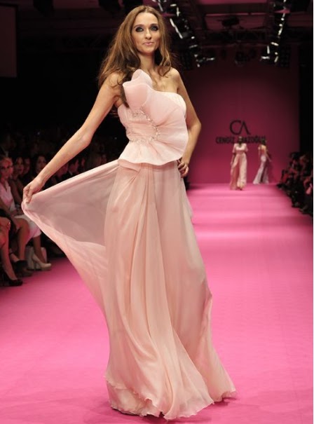 Cengiz Abazoğlu 25 Nisan'da CA Deluxe isimli bir marka için hazırladığı koleksiyonunu sergiledi. Hamileliğinden 45 gün sonra Çağla Şikel'i podyuma çıkaran tasarımcı bu sefer de iki çocuk annesi Ebru Şallı boy gösterdi. İşin maganizel boyutunun yanısıra, yine çok güzel parçalar var. Ben özellikle, gelinlik olarak kullanılabilecek pastel tonlardan seçimler yaptım.