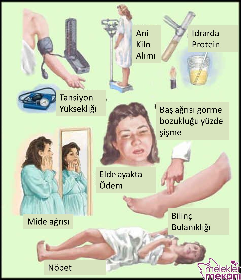 Tansiyonun giderek yükselmesi buna bağlı olarak elde ayakta yüzde şişlikler görülen bir durumdur. Aynı zamanda idrarda protein fazlalığı durumu oluşur. Bunu bizzat ikizlerime hamileyken yaşamıştım özellikle hamileliğimin sonlarına doğru sürekli normal seviyelerde olan tansiyonum birden yükselme belirtileri göstermeye başladı. Ellerimde ayaklarımda henüz şişlik ya da ödem oluşmamıştı ama doktorumun hızlı müdahalesi sonucu sezaryen doğuma karar verdik. Eğer belki de daha uzun süre doktora görünmeseydim Allah korusun belki ölümlere de yol açabilirdi. Şükür olsun ki erken de olsa bebeklerime kavuştum sağlıklı bir şekilde. Yüksek tansiyonunuz olmasa bile bunun hamilelikte olmayacağı anlamına gelmiyor. Bunun mutlaka hamilelik boyunca kontrol altına alınması gerekiyor.