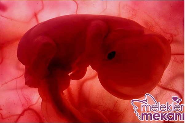 Bebeğiniz süratle büyümeye devam etmektedir.Özellikle beyin ve kafa hızla büyümeye devam eder.Göz kapakları kıvrım şeklinde ayırt edilebilir. Alt çene belirginleşmeye başlar.Omurilik gelişimini sürdürür.Üst damak farklılaşır. Burnun ucu oluşur. Dişetlerinin altında dişler gelişimini başlatır.Yemek borusu farklılaşır ve nefes borusundan ayrılır.Kalp içinde kapakçıklar fark edilmeye başlar.Kalbin 4 odacığı ayırt edilebilir. Akciğerler yemek borusunun iki yanında yer alırlar. Böbrek oluşmaya başlar.