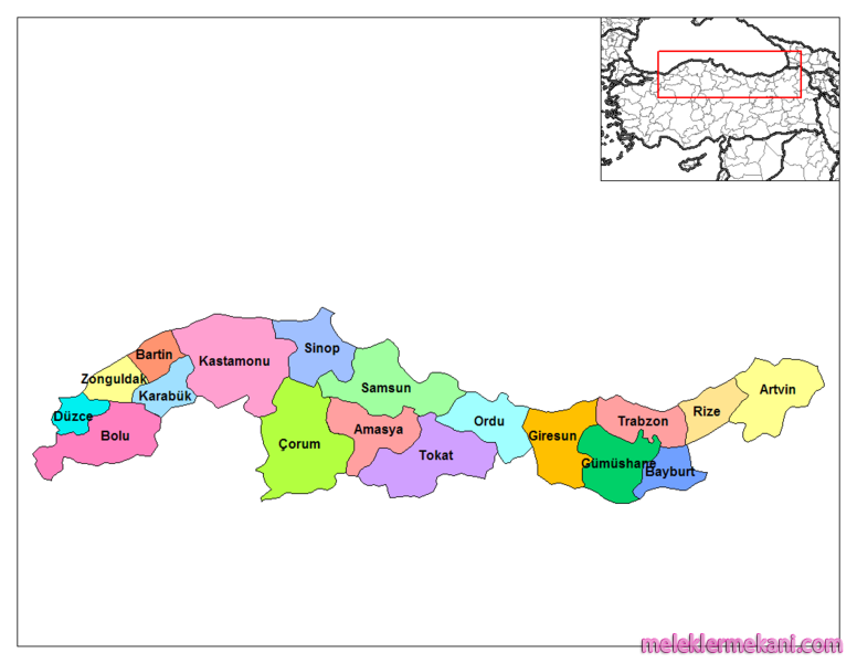 Amasya, Artvin, Bartın, Bayburt, Bolu, Çorum, Giresun, Gümüşhane, Karabük, Kastamonu, Ordu, Rize, Samsun, Sinop, Tokat, Trabzon, Zonguldak.